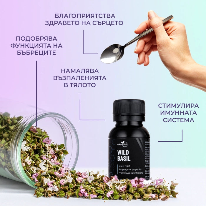 Το βάμμα 'Αγριοβασιλικός' της VitaOn είναι πρώτης ποιότητας και περιέχει προσεκτικά επιλεγμένα στελέχη του φυτού, ώστε να μπορείτε να αισθανθείτε την ευεργετική του επίδραση στην υγεία σας.