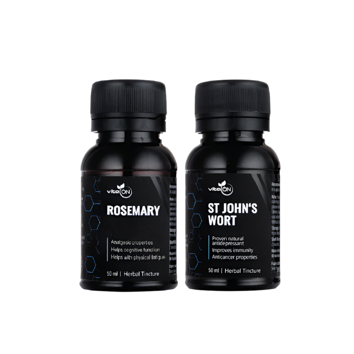 Ο συνδυασμός των δύο βαμμάτων - «Υπερικόν το διάτρητον» και του «Δεντρολίβανου» συμβάλλει στην καλή υγεία και λειτουργία του εγκεφάλου.