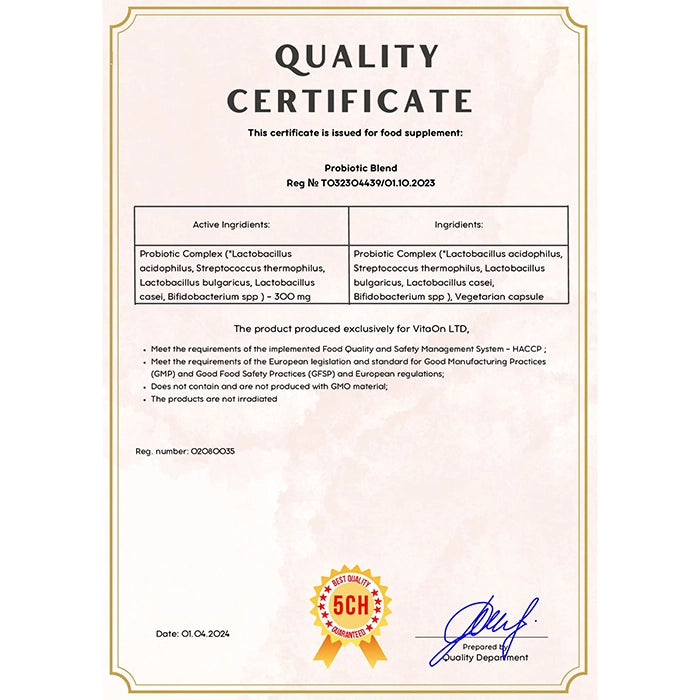 - Σύνθεση: 5×1010 προβιοτικές καλλιέργειες (Lactobacillus acidophilus, Streptococcus thermophilus, Lactobacillus bulgaricus, Lactobacillus casei, Bifidobacterium spp).